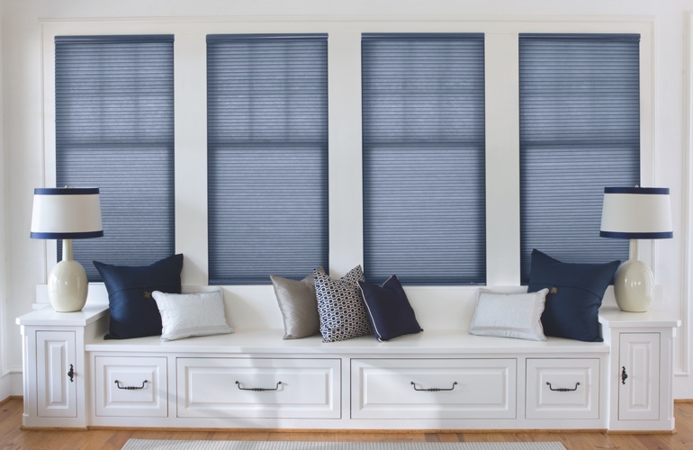 Another good blind upgrade are cellular (or honeycomb) shades. They’re built to trap more heat than normal shades, are easy to use, and provide a ton of options for colors, textures, fabrics and more.