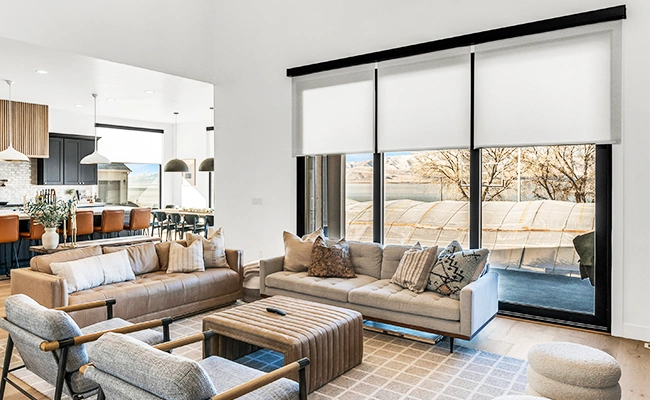- Expansive: Use motorized shades to conveniently cover broad panes of glass while maintaining clean lines and a contemporary feel.